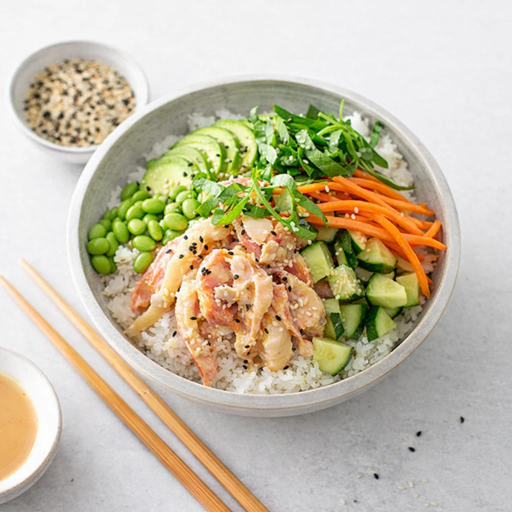 Spicy Poke Sauce: Whisk together 2 tablespoons ponzu sauce or soy sauce with 1 tablespoon Bang Bang Sauce and drizzle over the bowls.
